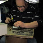 Questa tecnica antichissima, nei secoli consolidatasi a Campobasso, Antonio l’ha appresa dal Maestro Mario Villani dal quale ha carpito i segreti delle varie fasi produttive: disegno, bulinatura, traforo, sagomatura, riporto, cesello, punzonatura, lucidatura e pulizia finale.